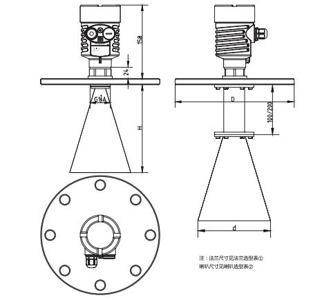 SKD53喇叭天線雷達物位計外型尺寸圖