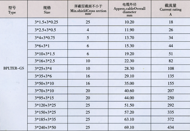 3、額定電壓:600/1000V,交流試驗電壓3500V。
