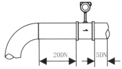 1.渦街流量儀表對(duì)安裝點(diǎn)的上下游直管段有一定要求,否則會(huì)影響介質(zhì)在管道中的流場,影響儀表的測(cè)量精度。儀表的上下游直管段長度要求見圖3