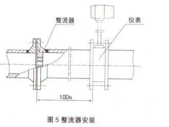 渦街流量計(jì)傳感器前后應(yīng)有足夠長的圓形直管段,其內(nèi)徑光滑并與通徑DN一致。前后直管段視前面狀態(tài)而變,確保流體為充分發(fā)展的流態(tài)。詳見圖3