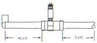 渦輪流量計傳感器應(yīng)安裝在便于維修,管道無振動、無強(qiáng)磁干擾與熱輻射影響的場所。安裝在室外時,應(yīng)有避直射陽光和放雨淋的措施。 (2)安裝要求及注意事項 渦輪流量計水平安裝的傳感器要求管道不應(yīng)有目測可覺察的傾斜(5°以內(nèi))垂直安裝的傳感器管道垂直偏差應(yīng)小于5°,流體方向應(yīng)有下向上。 不能停流的場所,應(yīng)加裝旁通和截止閥。 若流體含有雜質(zhì),則應(yīng)在上游側(cè)裝過濾器;若含有氣體,則應(yīng)在上游側(cè)裝消氣器。過濾器和消氣器的排污口和消氣口要通向安全的場所。 流量調(diào)節(jié)閥應(yīng)裝在傳感器下游,上游的截止閥在測量時應(yīng)全開,且都不得產(chǎn)生振動和外泄。對于可能產(chǎn)生逆向流的流程應(yīng)加止回閥以防流體反向流動。 傳感器應(yīng)與管道同心,密封墊圈不得凸入管路。傳感器不應(yīng)再水平管線的最高點(diǎn),以免管線內(nèi)聚集的氣體(如停流時混入空氣)停留在傳感器處,不易排出而影響測量。 傳感器前后管道應(yīng)支撐牢靠,不產(chǎn)生振動。對易凝結(jié)流體要對傳感器及其前后管道采取保溫措施。 傳輸電纜常用雙芯或三芯帶屏蔽信號電纜,屏蔽信號電纜最好在顯示儀表(流量積算儀或流量計算控制儀)端接地,傳輸路徑不應(yīng)與動力電源線平行,也不要敷設(shè)在動力電源線集中的區(qū)域。 渦輪流量計安裝直管段要求: