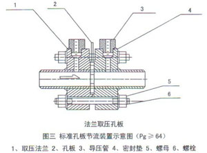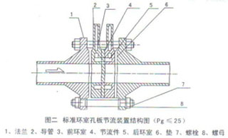 屬標準孔板。取壓方式為管道取壓。上游取壓孔中心位于孔板前面一倍管道內徑處。下游取壓孔中心位于距離孔板后端為管道內徑一半的地方。
