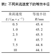 隨著流量計量行業(yè)的發(fā)展,插入式電磁流量計以其低成本、安裝維修方便等優(yōu)點廣泛應(yīng)用于大口徑管道流量的測量。盡管插入式電磁流量計測量屬于點測量,但用插入管道的探頭即傳感器上的兩個電極采集信號,探測到的是一定區(qū)域內(nèi)流體的信息。 現(xiàn)如今,絕大部分人采用流體力學方法(CFD)對流場進行仿真研究,而其中使用最為廣泛的數(shù)值解法就是有限體積法,本文采用的仿真軟件FLU-ENT就是基于此。而很多人在運用CFD方法進行插入式電磁流量計流場仿真時,往往無法確定其在管道中的計算域,導致其信號模擬難以實現(xiàn)。針對這種情況,本文通過FLUENT軟件對管道內(nèi)流場進行三維數(shù)值模擬,提出了信號作用范圍的概念和確定方法。 1 基本原理 1.1 信號作用范圍的定義 根據(jù)插入式電磁流量計的工作原理,距離電極越遠的區(qū)域,其磁感應(yīng)強度越弱;當遠到一定距離時,該處流體切割磁感線所產(chǎn)生的電動勢弱到不會對流體檢測結(jié)果產(chǎn)生影響。所以,對于大口徑管道,插入式電磁流量計傳感器探頭電極能檢測到的流量信號實際上是被測管道內(nèi)傳感器探頭附近某一空間區(qū)域的電信號,而并非覆蓋整個管道。 所以,本文對信號作用范圍做了一明確定義。信號作用范圍是指電極附近的某一空間區(qū)域,該區(qū)域內(nèi)導電流體切割磁感線所產(chǎn)生的電動勢對流量檢測結(jié)果起決定性作用。 1.2 等效半徑R的定義 在流場中,信號越強則越容易被電極接收到,場內(nèi)每點產(chǎn)生的信號大小與流過該點的流速有關(guān),而插入式電磁流量計由于探頭的插入導致流場分布發(fā)生變化,故可知電極不是在其周圍等距離的采集有效信號,即實際的信號作用范圍是不規(guī)則的區(qū)域。為了方便研究,用下述方法定義等效信號范圍。一個在電極周圍的具有半徑R的球形區(qū)域VR,使它與實際信號作用范圍對信號產(chǎn)生的貢獻是等效的,即滿足式(1)。 (1) 式(1)中,Π為流體在流場中切割磁感線對信號產(chǎn)生貢獻的實際總體區(qū)域,VR為以電極為球心的區(qū)域,其半徑R定義為等效半徑,Φ(x,y,z)是流動空間中流體單位體積貢獻的信號。只要確定出等效半徑R,就能表征出等效信號作用范圍VR。 1.3 等效半徑R研究方法 根據(jù)體積流量的計算公式可知: QV=AU (2) 式(2)中U指的是截面A的面平均流速。而在儀表測量時實際檢測到的流速應(yīng)該是信號作用范圍內(nèi)的整體平均流速,通過標準裝置檢定得到儀表的轉(zhuǎn)換系數(shù)K,可以把信號作用范圍內(nèi)的整體平均流速轉(zhuǎn)換成電極所在位置處管道最小橫截面(簡稱最小截面)的面平均流速,從而計算出流量值。故在仿真時可以把信號作用范圍內(nèi)的平均流速代替最小截面的平均流速,通過這個原理可以對信號作用范圍進行求解和驗證。 1.4 等效半徑R分析步驟 關(guān)于等效半徑R的確定,以FLUENT軟件對插入探頭的大口徑管道進行數(shù)值模擬。步驟為:①求得某一來流速度U下,不同區(qū)域半徑r與該半徑球形區(qū)域范圍內(nèi)平均流速之間的關(guān)系;②根據(jù)連續(xù)性方程求得最小截面的理論平均流速;③利用插值方法確定該來流速度下信號作用范圍的等效半徑R;④改變來流速度重復此模擬實驗。 2 信號作用范圍的確定方法 2.1 確定計算域 為了保證網(wǎng)格質(zhì)量,選擇工程上使用十分廣泛、結(jié)構(gòu)較為簡單的圓柱二電極探頭作為仿真對象,計算域如圖1所示。在保證前后直管段的基礎(chǔ)上,設(shè)定常溫常壓下水為流動介質(zhì),入口邊界條件為速度入口,出口邊界條件為壓力出口,選擇標準k-ε模型為湍流模型,其經(jīng)驗常數(shù)C1ε、C2ε、C3ε分別取1.44、1.92、0.09,湍動能和耗散率分別取1.0和1.3。 根據(jù)信號作用范圍概念可知,只要探頭能夠檢測到流量信號,表明該處的流動一定在磁場區(qū)域范圍內(nèi),則計算域內(nèi)的平均速度為: (3) 式(3)中Vr為計算區(qū)域,u(x,y,z)為速度函數(shù)。 圖1 插入式電磁流量計計算域 2.2 最小截面理論流速的求解 所研究的背景是插入式電磁流量計用于測量大口徑管道的流量,因此,所采用的管道模型是大口徑管道,尺寸如下:管道內(nèi)徑為400mm,探頭半徑為32mm,電極半徑為5mm,探頭的插入深度為120mm。 由連續(xù)性方程可得: (4) 式(4)中U為實際來流速度,A1為管道截面積, 為最小截面理論流速,A2為最小截面積。 用GAMBIT軟件建立模型,可直接得出A2=117961.70mm2。取來流速度在0.5~10m/s范圍內(nèi)的6速度點,則可以根據(jù)公式(4)求出不同來流速度下流過最小截面的理論流速。 2.3 計算域內(nèi)的平均流速和計算域半徑之間的關(guān)系 取計算域半徑在10~80mm的范圍內(nèi),通過GAMBIT軟件分別建立模型,再由FLUENT軟件分別進行仿真,得出在不同半徑的計算域內(nèi)所對應(yīng)的體積加權(quán)平均流速,如表1所示。 表1 不同計算域半徑下的平均流速 從表1數(shù)據(jù)可以看出,隨著計算域半徑的增大,計算域內(nèi)的平均流速逐漸減小。這是因為在計算域半徑較小時,在探頭附近的湍流活動比較劇烈,導致了此區(qū)域內(nèi)的平均流速過大;而當計算域半徑較大時,最外層區(qū)域的流體流動情況減弱,即那些區(qū)域?qū)π盘柌黄饹Q定性作用,導致了平均流速過小,同時也說明了等效信號作用范圍