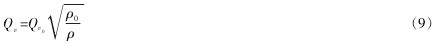 0引言 轉子流量計是常用的節(jié)流式流量計之一,具有結構簡單、制造容易、測量范圍寬(量程比可達 10:1)、測量精度較高(誤差±5%左右)、示值直觀、維護方便、壓損小等優(yōu)點,是現代生活和工業(yè)生產中應用廣泛的計量器具。 在計量技術水平日益發(fā)展、測量精度需求不斷提高的今天,計量工作者只有全面了解轉子流量計的結構原理、流量計算、量值影響因素與修正方法、以及流量計的選型、安裝要求,才能選出符合需求的計量儀表,實現測量效果。希望本文給計量工作者帶來些許幫助。 1轉子流量計結構原理簡析 1.1 結構分析 轉子流量計由兩部件組成, 一是從下向上逐漸擴張的錐形管,二是置于錐形管中,可沿管中心線上下移動、密度比流體稍大的轉子(圖1 轉子流量計原理圖)。 錐形管由玻璃、塑料或金屬材質制成。 玻璃或塑料材質的錐形管上刻有流量刻度,透過錐管可看到透明流體中轉子的位置及所對應的刻度值; 金屬材質錐形管中轉子位置通過磁性耦合等方式傳遞管外,在面板上顯示量值。 1.2 工作原理 當測量流體的流量時,流體從錐形管下端流入沖擊轉子,對它產生一個作用力,力的大小隨流量大小而變化;當流量足夠大時,所產生作用力將轉子托起,使之升高;流體經轉子與錐形管壁間的環(huán)形斷面從上端流出。 當流體對轉子的作用力等于轉子重量時,轉子因受力平衡而停留在某一位置;這個位置與流量有相互對應的關系,據此位置,即可求得流量值。 1.3 流量計算 流量計轉子在錐形管中受三個力:重力、動壓力和浮力,三力平衡時,轉子重力=動壓力+浮力。 當流速變大或變小時,轉子將向上或向下移動,流體流動的截面積也發(fā)生變化,直至達到平衡時對應的流速,轉子在新的位置上穩(wěn)定。 因此,轉子穩(wěn)定時受力關系公式如下: 其中:ρt-轉 子密度 ;ρf- 流 體密度 ;g- 重 力加速度 ;V- 轉 子體積 ;△p-轉子前后壓差;A-轉子最大截面積。 結合公式(1),并參照孔板流量計流量與節(jié)流壓差間的關系方程式: 得轉子流量計流量公式: 其中:Qv-流量值;a0-流量系數(與轉子形狀、流體狀態(tài)、流量計結構和流體物理性質等因素有關, 只能由實驗來確定);A0-環(huán) 隙面積 ,對應于轉子高度 h;近似有:A0=ch;系 數 c 與轉子和錐形管的幾何形狀及尺寸有關;ρt-轉子密度;ρf—流體密度;At-轉子最大截面積。 流量方程式可寫成: 由公式(4)可知,轉子的停浮高度 h 與流量 qv成對應關系;根據高度的不同來標刻流量值,即可在實際應用中即時讀取流量值。 2測量值的流體相關性修正 2.1 測量值修正分析 從式(4)可知,被測流體的密度不同,流量大小與轉子高度之間的對用關系也不同。 因受標定設備的限制,生產廠商不可能對所有流量計都做實液標定,故測量非標定介質時,應對讀出的測量值進行修正,以保證精度。 對于液體,其密度為常數,只需修正被測液體和標定液體不同造成的影響即可;而氣體因具有可壓縮性,還應考慮標定狀態(tài)和實際狀態(tài)不同時溫度和壓力的影響。 通常,標定狀態(tài)默認為:溫度 T=293.16K,絕對壓力 p=101325Pa。根據流量計算公式,進行如下分析: 一方面,設定在標定狀態(tài)下,測量標定流體的流量公式為: 式中:Qv0-標定狀態(tài)下標定流體的流量示值 ;a0-標定狀態(tài)標定流體的流量系數;ρ0-流體在標定狀態(tài)下的密度。 另一方面,設定流量計在工作狀態(tài)下,測量被測流體的流量公式為: 式中:Qv-工作狀態(tài)下被測流體的流量示值;a-工作狀態(tài)被測流體的流量系數;ρ-流體在工作狀態(tài)下的密度。 由式(5)和式(6)可以看出,在實際工作狀態(tài)下,被測流體的實際流量為 qv,但轉子在高度 h 處,轉子流量計的顯示仍然是 qv0。 比較式(5)和式(6),可以得出 Qv和 Qv0之間的關系,即流量修正公式為: 實驗表明,流量系數 a 與雷諾數 Re 和流量計結構有關,當被測流體的黏度與標定流體的黏度相差不大時,或在流量系數 a 為常數的流量范圍內,可不考慮 a 的影響,即可以認為 a=a0,所以(7)式可以簡化為: 若被測流體的黏度相對標定流體的黏度相差較大,則應考慮黏度差異對實際流量系數 a 與標定流量系數 a0間的差異,參照式(8)進行修正或進行實際標定,不能簡單地認為 a=a0。 2.2 流體密度修正 2.2.1 液體流量的測量值修正 流量計對液態(tài)類流體的測量示數通常采用水為參照流體,在標定狀態(tài)下進行標定。 實際測量非水液體流量時,只需修正被測液體和標定液體(水)之間密度差異而造成的影響,即可按(8)式進行修正換算。此時,ρ0為標定流體的密度,ρ 為被測流體的密度。 2.2.2 氣體流量的測量值修正 流量計對氣態(tài)類流體的測量示數采用空氣為參照物,在標定狀態(tài)下進行標定。由于氣體的密度受溫度、壓力變化的影響較大,故不僅應隨著被測氣體與標定氣體之間的密度不同進行換算,而且要隨工作狀態(tài)時溫度和壓力與標定狀態(tài)的不同進行修正換算。為簡化氣體流量值的修正,一般可以忽略黏度對流量系數的影響,而且,對于氣體來說,由于 ρt>>ρ0,ρt>>ρ,則由(8)式可得: 測量非標定狀態(tài)下的空氣流量時,可直接使用式(9)計算。但 ρ 為被測氣體在工作狀態(tài)下的密度,實際使用起來較為不便。為此,可以將流體密度和所處狀態(tài)分開修正,即先在標定狀態(tài)下對被測流體的密度進行修正,然后再進行狀態(tài)修正。 最后