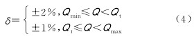 式中:δ為計量相對誤差;Qmax為工況最大流量,m3/h;Qmin為工況最小流量,m3/h;Qt為分界流量點,其值等于 20%Qmax,m3/h。