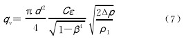 式中:qv為工作狀態下體積流量,m3/h;d 為工作條件下孔板開孔直徑,mm;C 為流出系數,對于孔板,按標準計算;? 為可膨脹系數;? 為節流件等效直徑比;Δp為介質流經孔板時產生的壓差,kPa;?1為介質在工作狀態下的密度,kg/m3。