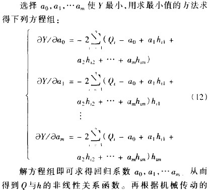 由于每臺流量計的錐管和浮子的加工誤差不可能一致,每臺金屬管轉(zhuǎn)子流量計的流量值p和浮子位移h的作線性關(guān)系也不可能一樣,所以在實際制造時流量計的凸輪都要逐臺校驗加工,設(shè)口與h的非線性回歸模型為
