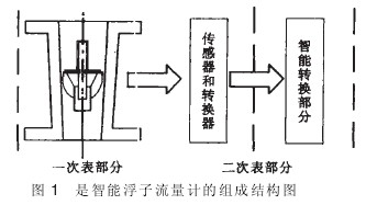 從目前的狀況看,玻璃管浮子流量計和塑料管浮子流量計已經(jīng)基本成型,且應用比較成熟。而金屬管浮子流量計由于應用場合的結構的特殊性決定了它的市場很大,改進的空間也很廣。一般來說,金屬管浮子流量計大多由浮子錐管、傳感轉(zhuǎn)換器兩部分構成。也有少數(shù)包含智能信號處理器。其中浮子錐管、傳感轉(zhuǎn)換器屬于傳感部分,智能信號處理器是傳感部分的后續(xù)處理單元。傳感部分負責采集信號,獲取浮子高度、流量的相關信息;智能信號處理器是處理傳感部分采集的信息,進行流量顯示,置系數(shù),和遠傳輸出。智能浮子流量計的結構見圖1.