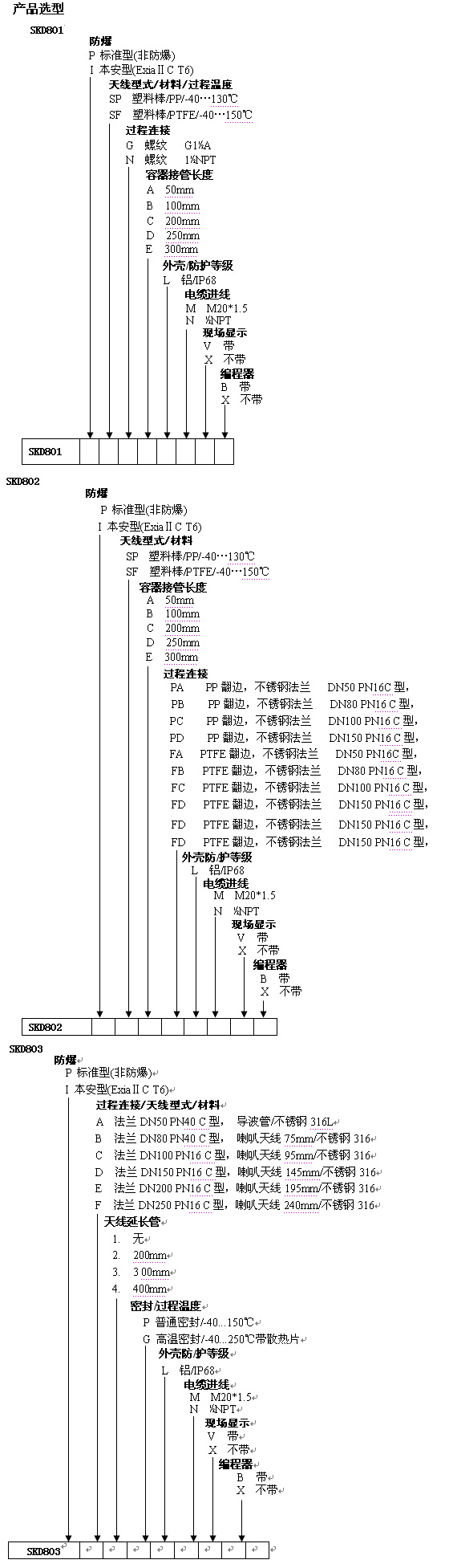 過程連接 SKD801 (PP,PTFE天線) :G1-1/2 316L不銹鋼,: