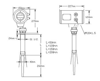 2. 如果喇叭直徑大于安裝短管的直徑,包括延伸管在內的天線需要從容器里面安裝,并將儀表抬高。選擇延伸管使儀表至少抬高100mm。
