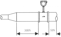 1.渦街流量儀表對安裝點的上下游直管段有一定要求,否則會影響介質在管道中的流場,影響儀表的測量精度。儀表的上下游直管段長度要求見圖3