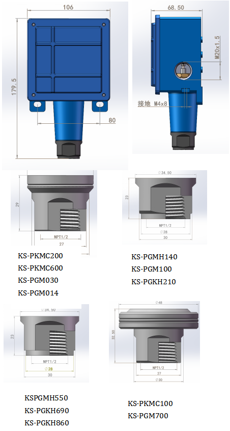 KS-VKM系列:丁腈橡膠及1/2NPTF壓力接口鋁合金材質(zhì)(其他接口和材質(zhì)可定制)