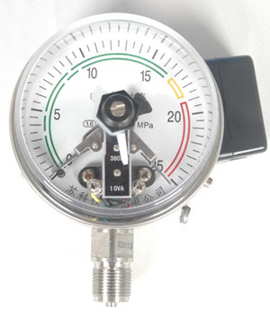 普通壓力表和接觸裝置兩個(gè)獨(dú)立部分組成。工作穩(wěn)定可靠,廣泛用于測量對(duì)銅、鋼及其合金無腐蝕作用的液體、氣體等介質(zhì)的壓力和發(fā)出電信號(hào),用于自動(dòng)控制系統(tǒng),接通控制電路,達(dá)到自動(dòng)控制的報(bào)警得目的。